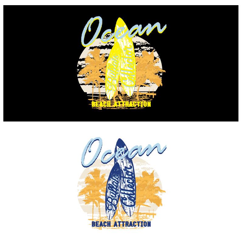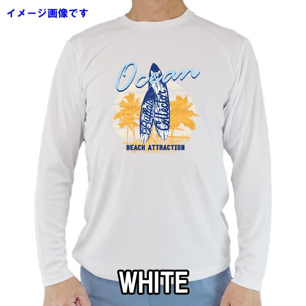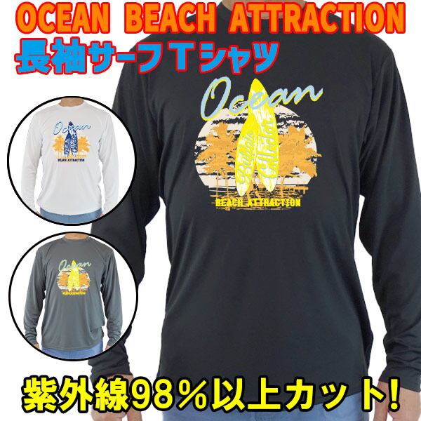 男女兼用 Tシャツタイプ長袖ラッシュガード サーフTシャツ UPF50+【OCEAN BEACH ATTRACTION】オリジナル UVカット [返品、交換及びキャンセル不可]