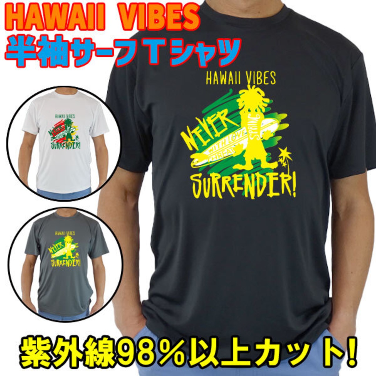 男女兼用 Tシャツタイプ半袖ラッシュガード サーフTシャツ メンズ/レディース UPF50+ 【HAWAII VIBES】 オリジナル UVカット[返品、交換及びキャンセル不可]