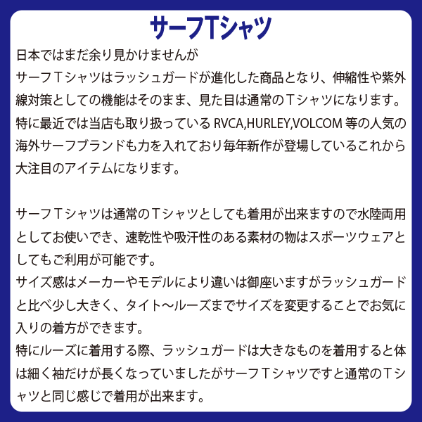 衛生上ラッシュガードの返品交換は一切出来ません。