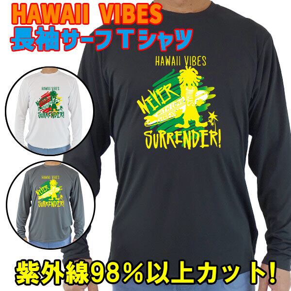 男女兼用 Tシャツタイプ長袖ラッシュガード サーフTシャツ メンズ/レディース UPF50+【HAWAII VIBES】 オリジナル UVカット [返品、交換及びキャンセル不可]